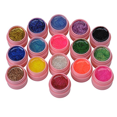 Hjuns 16 pezzi, colori con brillantini in Gel UV acrilico Builder-Set di adesivi per unghie