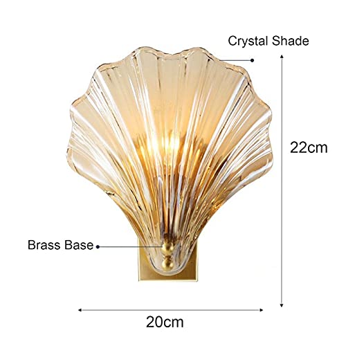 HJXDtech Applique da Parete Moderna in Cristallo Conchiglia Lampada da Parete in Metallo Ottone Illuminazione da Parete in Vetro per Cuarto Sala Cuarto de baño (Ambra)