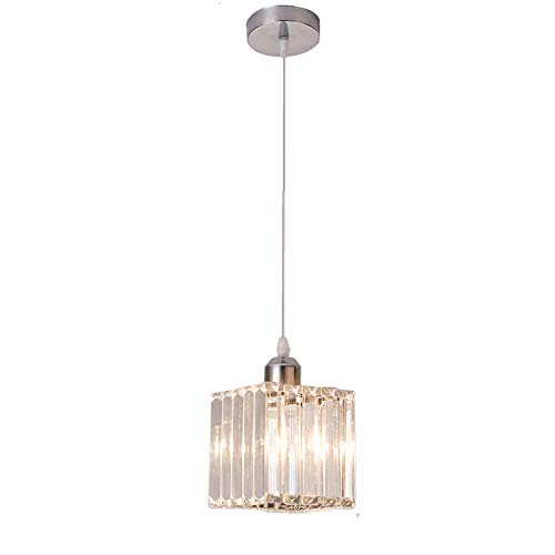 HJXDtech Lampada a sospensione moderna con paralume Quadrato in cristallo, Loft Bar E27 Illuminazione da Soffitto, lampadario per Soggiorno Camera da letto Cucina (Argento, 1 Luce)