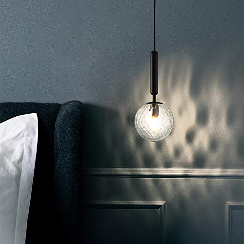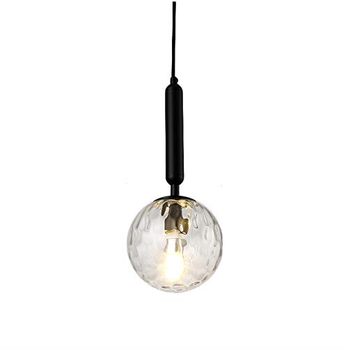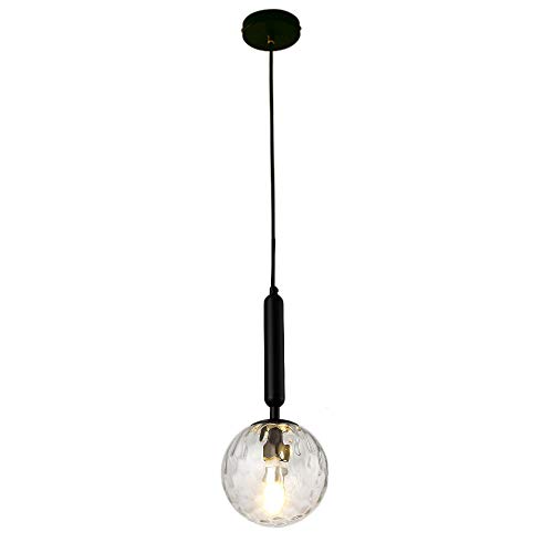HJXDtech Lampadario a sospensione Moderna Semplice in Metallo con Sfera in Vetro, Lampada a soffitto Nordico E14 Loft Bar (Nero, Cristallo)