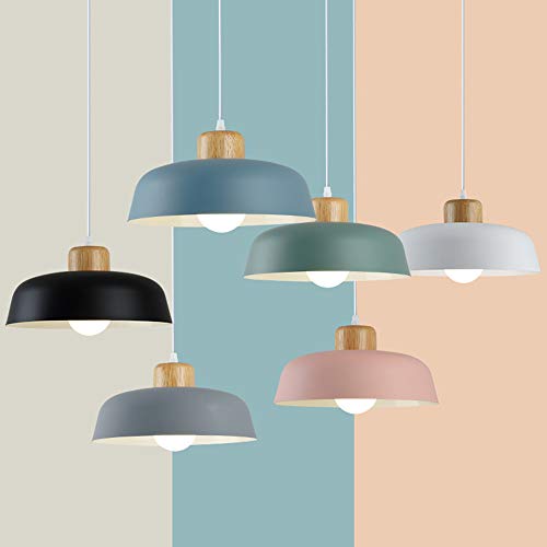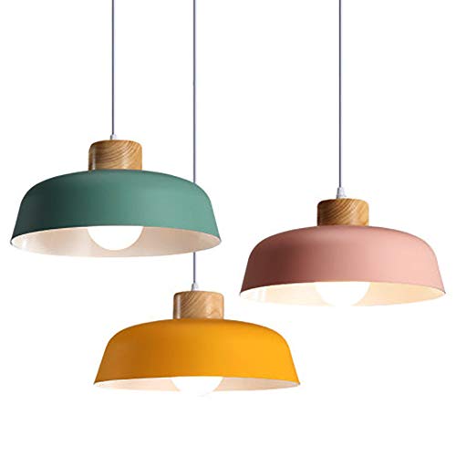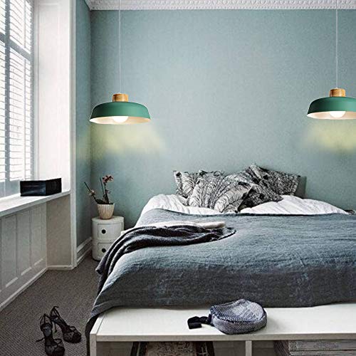 HJXDtech Lampadario a sospensione rotondo moderno in metallo colorato semplice, Lampada da soffitto E27 con finitura in legno Luce per soggiorno cucina camera da letto (Verde)