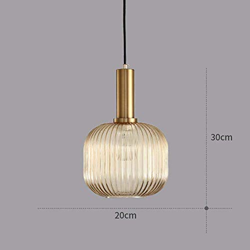 HJXDtech Lampade a Sospensione Moderne Lampada a Sospensione in Vetro Striscia Paralume Vintage E27 Lampada a Sospensione Lampada da Soffitto in Cucina Soggiorno (Ambra, M 20cm)