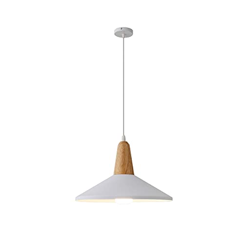 HJXDtech Macaron Lampada a sospensione in metallo Portalampada in legno vintage lampadario camera da letto industriale Illuminazione a sospensione per camera da letto con isola cucina (bianco)