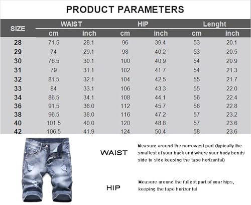HJXX Pantaloncini di Jeans da Uomo Pantaloni Corti Strappati Casual Estivo Pantaloncini in Denim Regular Fit Bermuda Shorts,Light Blue,42