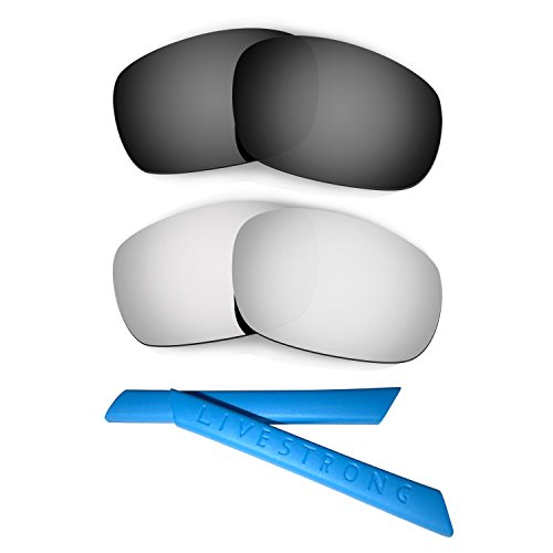 HKUCO Black/Titanium Polarized Compatible/Replaceable Lenses Plus Blue Earsocks Rubber Kit for Oakley Jawbone