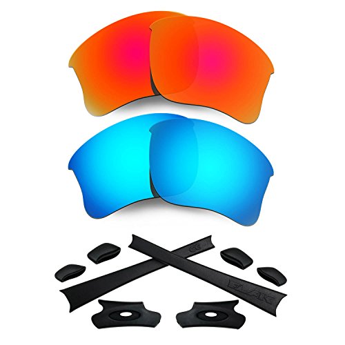 HKUCO for Oakley Flak Jacket XLJ Red/Blue Polarized Compatible/Replaceable Lenses And Black Earsocks Rubber Kit