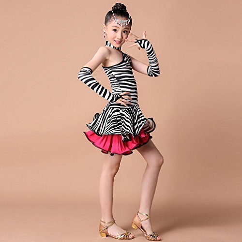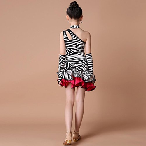 HLHN Vestito / body da danza leopardato senza maniche, per ragazze e bambine, per balli latini, Nero, 10-11 Years (Height:150CM)