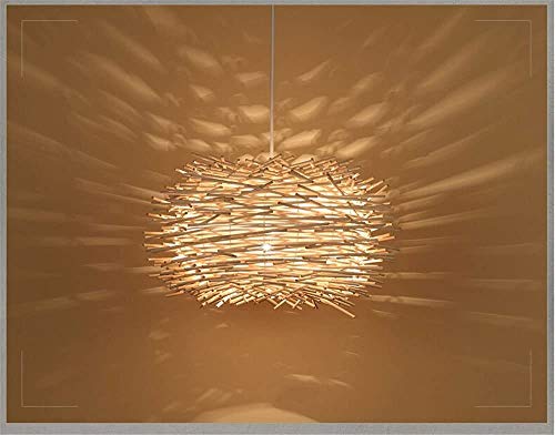 HLigExp Lampada Da Soffitto a Led in Rattan Intrecciato a Mano Con Paralume Retrò Creativo a Nido D'uccello Lampadario in Tessuto E27, Altezza Regolabile, Per Caffè, Bar, Soggiorno Di Tè