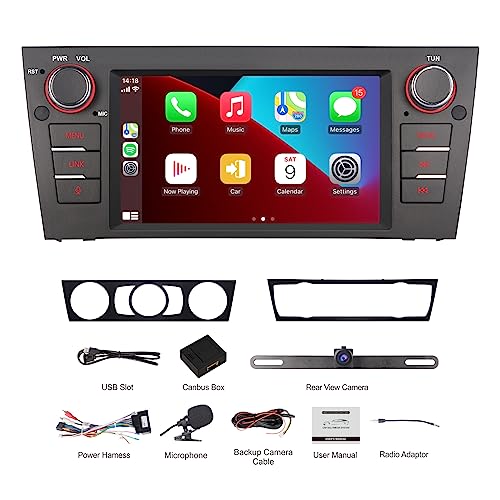HLLECARMO Stereo per BMW E90 Serie 3 E90 E91 E92 E93 2005-2011 Radio Auto Audio Wireless Carplay e Android Auto 7" HD Touchscreen AM/FM Subw EQ Bluetooth Mirror Link AHD Backup Camera SWC