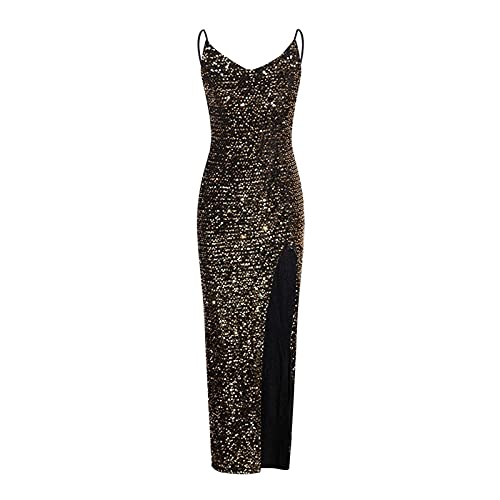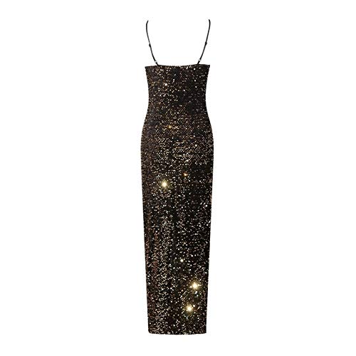 HLMJ Le Donne Profondo Scollo a V Paillettes Wrap Maniche Vestito dal Locale Notturno del Partito Increspato Abiti Veste Longue (Color: Navy, Size: L.)