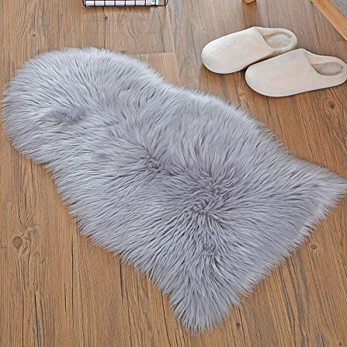 HLZDH Faux Pelliccia di Agnello di Pecora Tappeto Sintetica Decorativa Fell in Super Soffice Pelliccia di Agnello Imitazione Tappeto Longhair Effetto Pelliccia Divano Letto (Grigio, 80 X 50 CM)