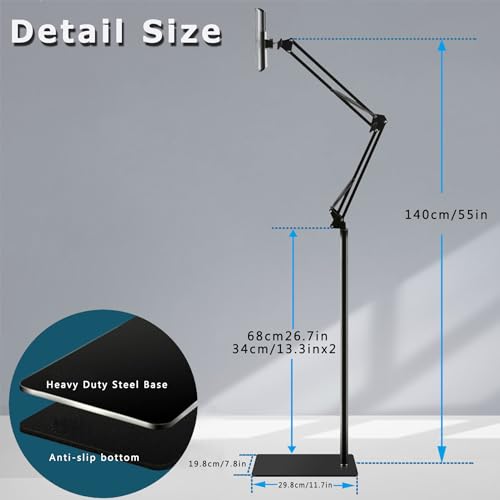 Visibilità flessibile: questo supporto da pavimento può anche ruotare liberamente e senza intoppi di 360 gradi per soddisfare qualsiasi angolo di visione. Il braccio stabile e il supporto possono oscillare di 360 gradi e fermarsi in qualsiasi direzione senza spostare la base