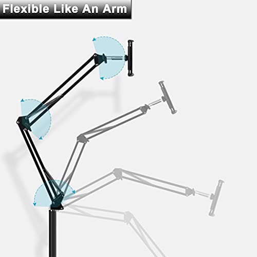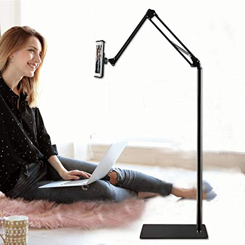Hmfmdy Supporto da pavimento regolabile universale per cellulare e tablet, girevole a 360 gradi, per tablet da 4,7 a 13 pollici Pro 10,5/9,7/12,9, iPad Air, Mini 2/3/4, Galaxy Tab, eBook - Nero