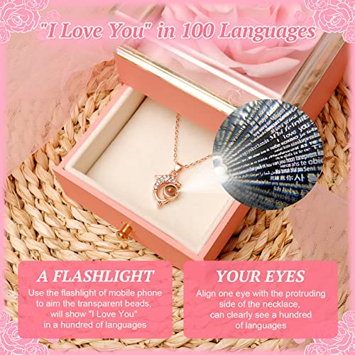 HMGDFUE Rosa Eterna Festa Della Mamma Idee Regalo, Vera Rosa Stabilizzata con Romantico Ti Amo Collana Confezione, Regalo Donna Festa Della Donna per Mamma Fidanzata Amica Compleanno Anniversario