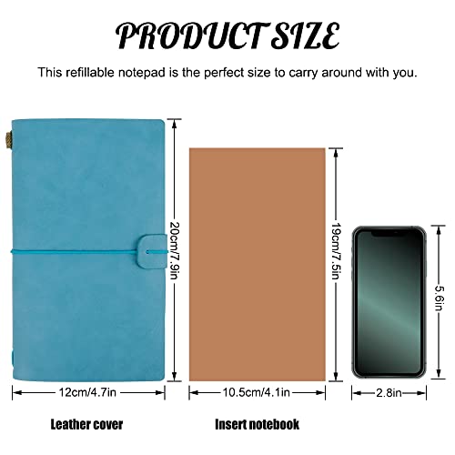 HMIEPRS Taccuino Vintage in Pelle con Chiusura Elastica e Tasche per Carte, Diario da Viaggio Ricaricabile, Quaderno Pelle 2 Tipi Di Inserti Regalo per Scrittore, Poeta, Viaggiatore (Azzurro)