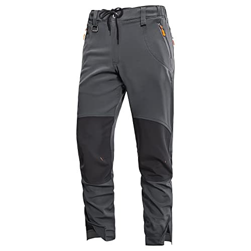 HMIYA Pantaloni Trekking Uomo Invernali Termici Pantaloni da Lavoro Impermeabile Foderati in Pile Pantaloni Softshell Sci Antivento all'aperto(Grigio,EU-L/US-M)