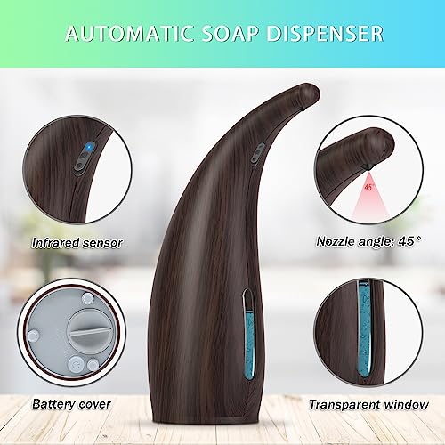 HMJIA Dispenser Automatico di Sapone, Dispenser di Sapone Elettrico con Sensore, Dispenser di Sapone Impermeabile IPX6 per Cucina e Bagno, Hotel, Ristorante, Luogo Pubblico. (Legno Scuro - 300ml)