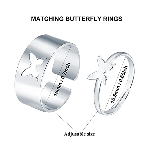 HMOOY Anelli a Farfalla per Coppie, Anelli a Farfalla 2 Pezzi per Donna Anelli a Farfalla Abbinati Anelli Abbinati per Le Coppie Anelli di Promessa di Fidanzamento Farfalla Regolabili (argento)