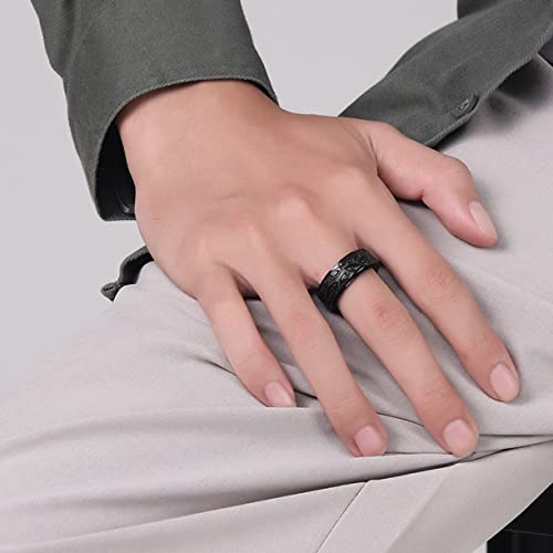 HMOOY Anello Occhio di Dio, Anello Fascia Rotante Occhio di Dio Tutto Vede Acciaio Inossidabile Anelli Rotazione Evil Eye Incisi Vintage per Ansia Gioielli Antistress per Uomo (Nero, 8)
