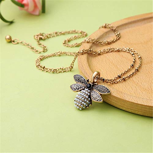 HMOOY Collana Lunga In Cristallo Ape Vintage Collana Con Pendente A Forma Di Ape Carina Con Catena Di Perle Artificiali Accessori Gioielli Fatti A Mano Per Uomo Donna (Gold)