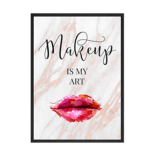 HMOTR Moda Tela Trucco Citazione Arte Poster Stampa Ciglia Labbra Sopracciglia Pittura di Marmo nordica Parete Immagine per Soggiorno decorazione-30x40cmx3pcs_No_Frame