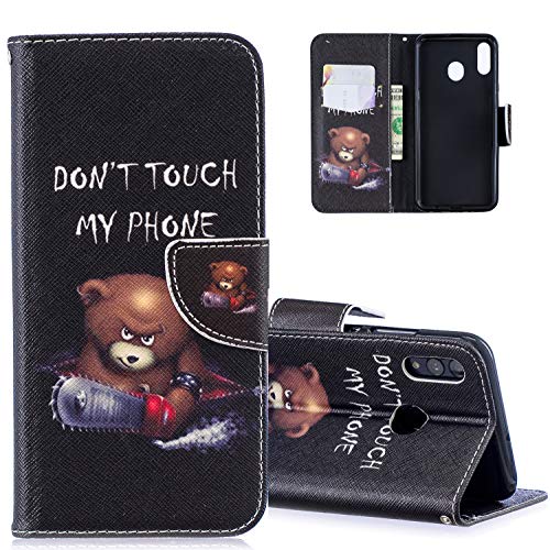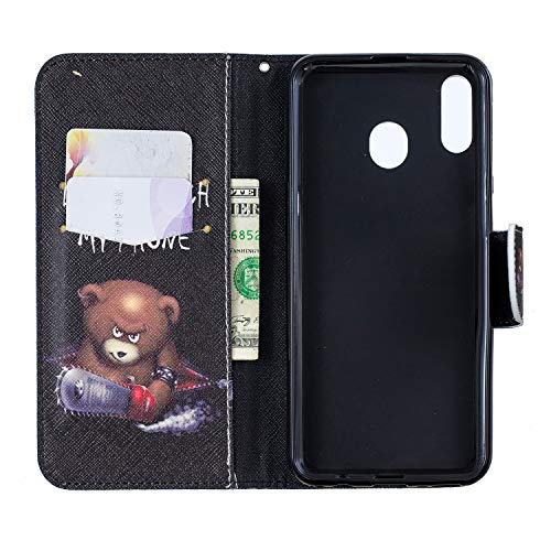 HMTECH Cover per Galaxy A50, portafoglio per Samung Galaxy A50, antiurto, motivo: pavillon floreale, anime, in pelle PU, con flip a portafoglio, per Samsung Galaxy A50, BF Saws Bear