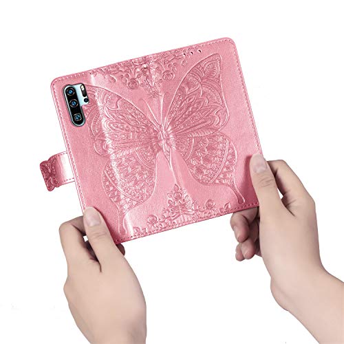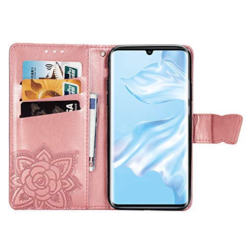 HMTECH Custodia Huawei P30 PRO Cover Portafoglio,Huawei P30 PRO Custodia Fiore Farfalla in Rilievo Wallet Shock-Absorption Magnetica Supporto Protettiva Bumper Cover Leather Flip Cover,SD hudie Rose
