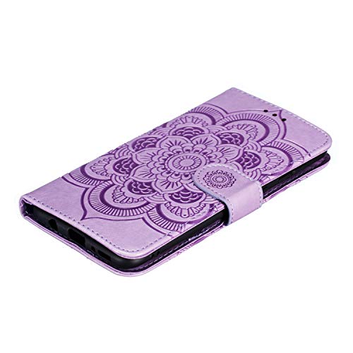 HMTECH Custodia a portafoglio per Samsung Galaxy A7 2018, motivo mandala, in pelle PU, per Samsung Galaxy A7 2018, colore: Viola