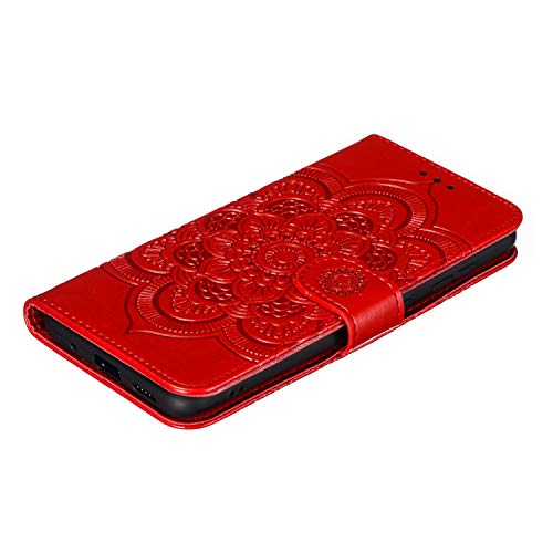 HMTECH Custodia a portafoglio per Samsung Galaxy A40, motivo: fiori di mandala, in pelle PU, a portafoglio, per Samsung Galaxy A40, LD mandala, colore: Rosso