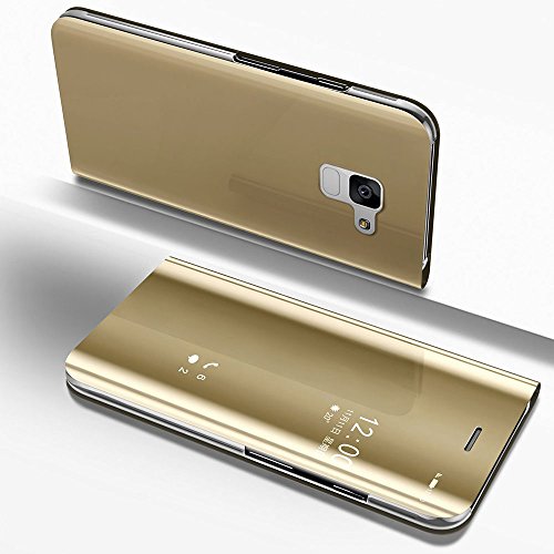 HMTECH Galaxy A6 2018 - Custodia in pelle con specchio e specchio, con funzione di supporto, per Samsung Galaxy A6 2018, Gold Mirror PU