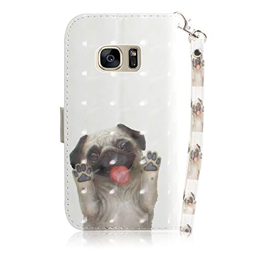 HMTECH Galaxy S7 Edge Custodia Cover Portafoglio,Samsung Galaxy S7 Edge Custodia 3D Pittura Colorata Wallet Shock-Absorption Magnetica Supporto Protettiva Bumper Cover Leather Flip Cover,TX Pug