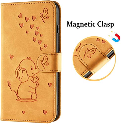 HMTECH Galaxy S10e Custodia Cover Portafoglio,Samsung Galaxy S10e Custodia Cuore Elefante Rilievo Wallet Shock-Absorption Magnetica Supporto Protettiva Bumper Leather Flip Cover,Love Elephant Orange
