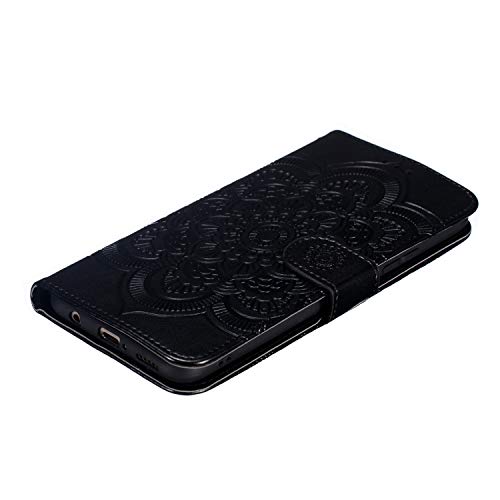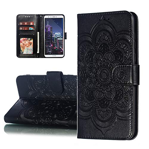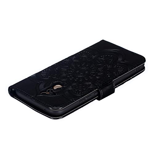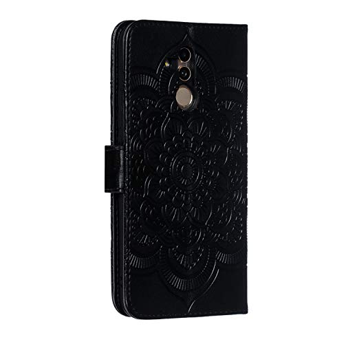 HMTECH Huawei Mate 20 Lite Custodia Cover Portafoglio,Huawei Mate 20 Lite Custodia Fiore di Mandala in Rilievo Wallet Shock-Absorption Magnetica Supporto Bumper Leather Flip Cover,LD Mandala Black