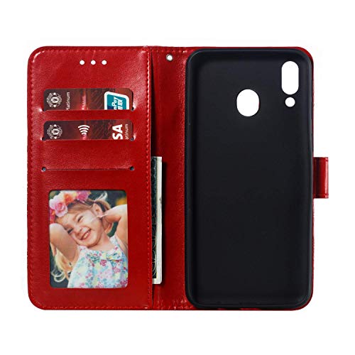 HMTECH Huawei P Smart 2019 Custodia Cover Portafoglio,Huawei P Smart 2019 Custodia Fiore di Mandala in Rilievo Wallet Shock-Absorption Magnetica Supporto Bumper Leather Flip Cover,LD Mandala Red