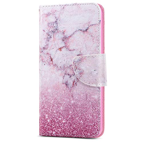 HMTECH Motorola Moto G7 Custodia Cover Portafoglio,Moto G7 Plus Custodia Pittura Colorata Wallet Shock-Absorption Magnetica Supporto Protettiva Bumper Cover Leather Flip Cover,HX Pink Marble