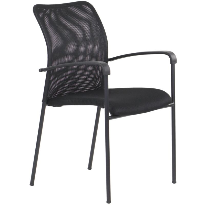 CARATTERISTICHE BASE struttura nera, sedile imbottito, schienale in rete, braccioli in plastica nera dotati di piedini in plastica per evitare di graffiare il pavimento, impilabile, tubo diametro 18 mm