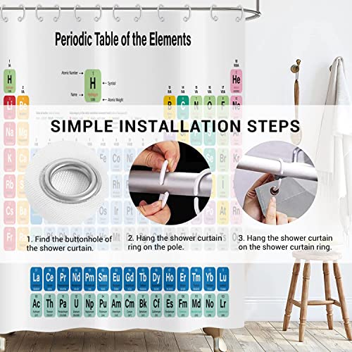 Hnmdmyi Tenda da doccia tavola periodica 180x200, colorato scienza tecnologia educazione chimica scuola studente tenda da bagno impermeabile poliestere tessuto lavabile tenda da bagno con ganci