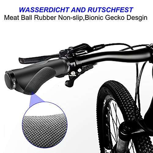 HNOOM Manopole MTB, Manopole Bici Ergonomici, Impugnature MTB Gomma Antiscivolo, Doppio Serratura in Alluminio, Impugnature Bici Universale 22mm (Nero)