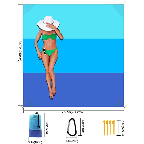 HNOOM Stuoia Spiaggia 210x200cm Coperta Picnic Grande Anti Sabbia Coperta da Spiaggia Portatile con 4 Picchetti Fixed per Picnic, Spiaggia, Viaggi, Escursionismo, Campeggio e Altro (Blu)