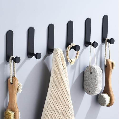 HNVNER 6 Pezzi Ganci Adesivi Bagno, Nero Gancio Accappatoio Doccia Senza Foratura, Lega di Alluminio Gancio Porta Asciugamani per Cucina (Nero)