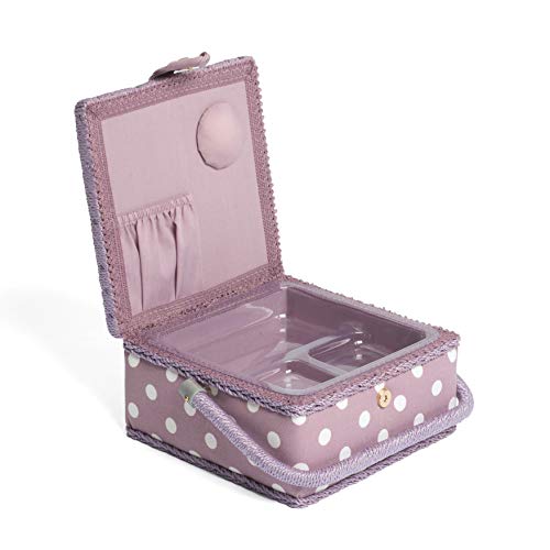 Hobby Gift MrsQ Esclusiva Piccola Cucito, Scatola portaoggetti Artigianale, Vassoio per Accessori, puntaspilli, Manico in PVC, 20 x 20 x 11 cm, Cotone, Pois Color Malva