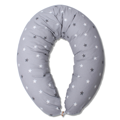 Il cuscino da allattamento con stellien, grigio di HOBEA è super pratico e facile da usare. Le estremità del cuscino per l'allattamento possono essere collegate con un pratico bottone in legno. L'imbottitura in fibra di silicone assicura una piacevole presa e non arrugginisce, per cui può essere utilizzato anche come ottimo cuscino laterale. Dettagli del prodotto: Materiale: tessuto esterno: 100% cotone, imbottitura: fibre di silicone Dimensioni: 190 cm x 38 cm Rivestimento lavabile fino a 40° C, riempimento lavabile fino a 30° C TÜV Nord testato Nessun rumore dovuto alle fibre di silicone Made in the EU