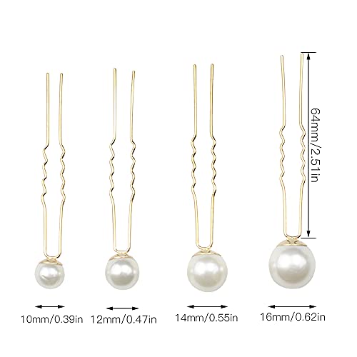 Hocadon 32 Pezzi Forcine per Capelli con Perle a Forma di U, Perni per Capelli Perla da Sposa, Fermagli per Capelli con Finte Perle Color Bianco per Feste e Matrimoni (Argento/Oro)