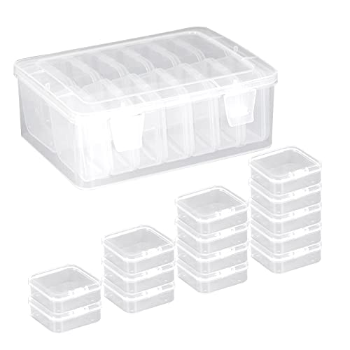 14 pezzi piccole scatole plastica trasparente quadrato e 1 rettangolo cancella custodia. puoi mettere la piccola scatola di plastica nella scatola di immagazzinaggio per evitare graffi o perdite.