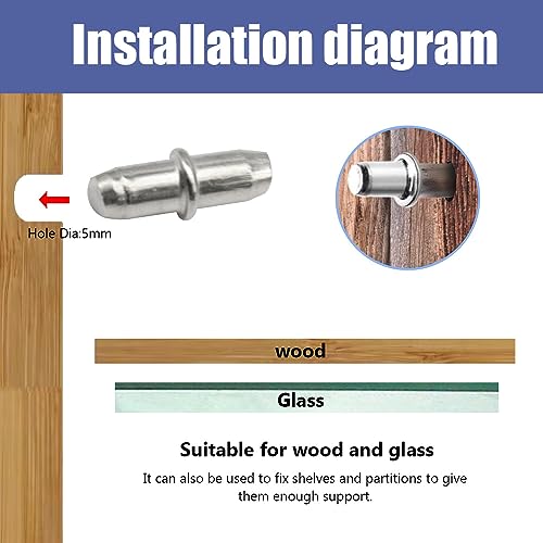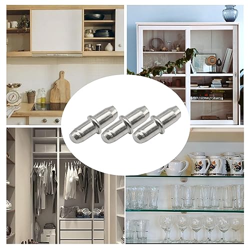 Hocansen 100 Pezzi Supporto Perni per Mensole 5mm Pioli di Supporto Reggipiani Perni con Anello per Foro per Mobili e Librerie (Silver/BT-ZZ)