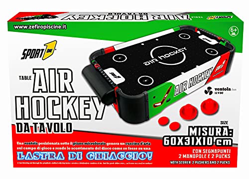 Air Hockey da Tavolo Sport One Mini Italy con Ventilatore a Batterie - Cm. 60 X 31 X 10 con Tutti gli Accessori - NOVITA' - SPECIAL EDITION - ESCLUSIVA ITALIA