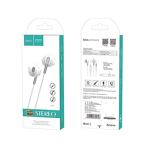Hoco M57 - Auricolari ad alta definizione, in-ear, anti groviglio, isolamento acustico, bassi profondi, per iPhone, iPod, iPad, lettori MP3, Samsung Galaxy, Nokia, HTC, Nexus, Blackberry, ecc. bianco