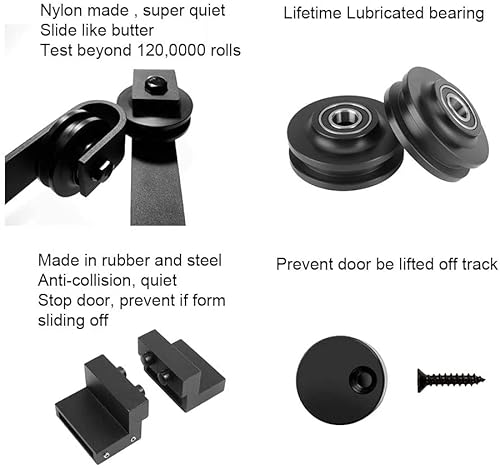 AMPIA APPLICABILITÀ: Il kit per porta scorrevole del granaio è progettato per l'interno,se si desidera utilizzarlo all'esterno,si prega di prestare attenzione alla manutenzione.