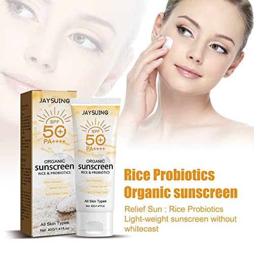 Hocossy Crema solare biologica di riso probiotico, protezione solare viso corpo Outdoor SPF50 ++ + protezione UV protezione viso collo, crema per scottature non grasse 40g