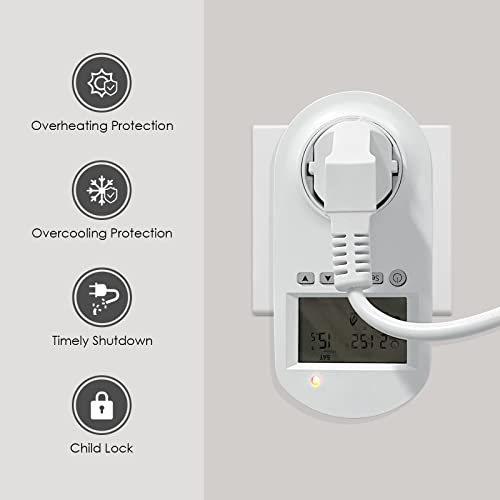 Hocosyme Termostato Presa, Termostato per Presa Programmabile Interrutore per Riscaldamento Elettrico